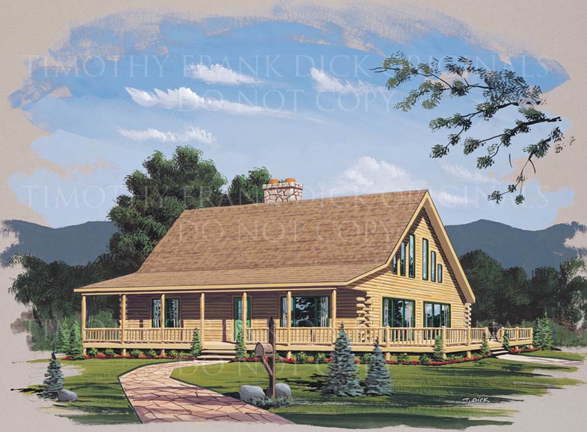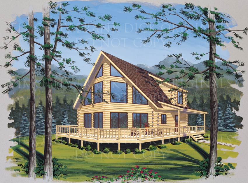 Click on the images below to view a larger version of the log home rendering and the individual floor plans.