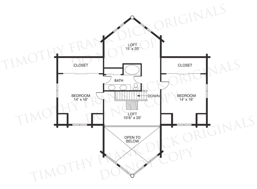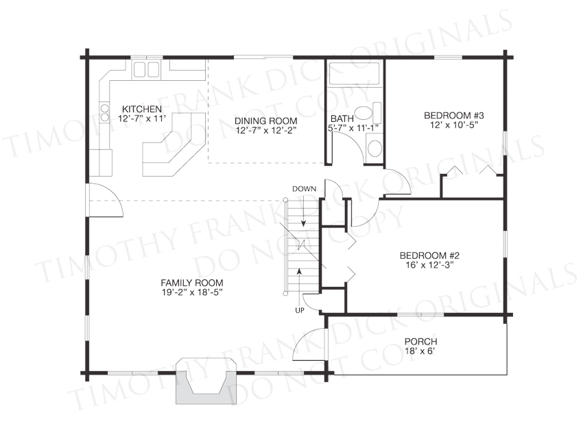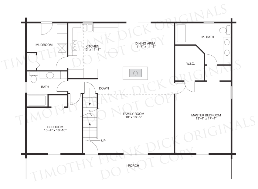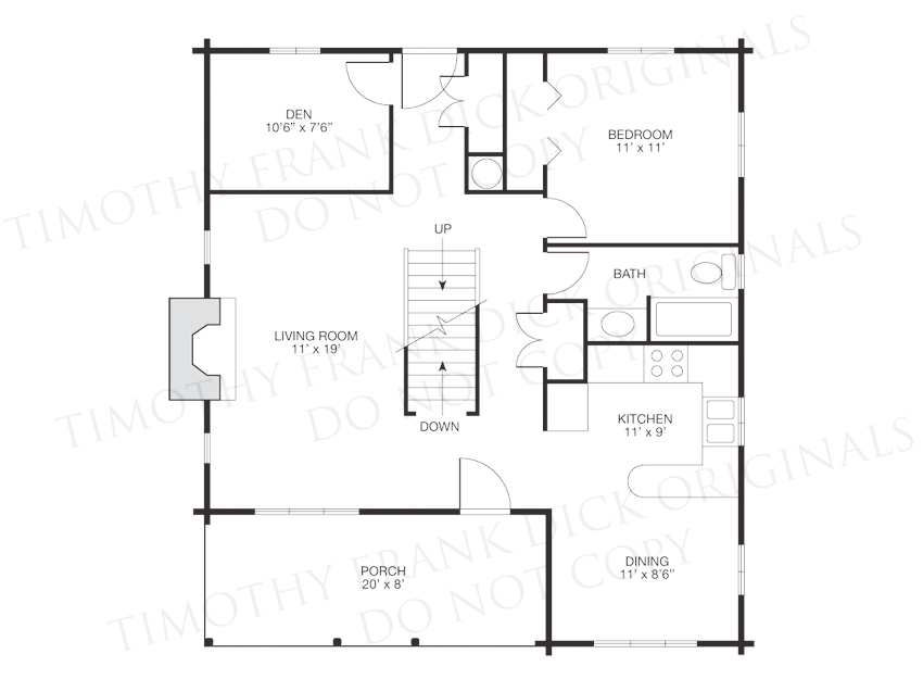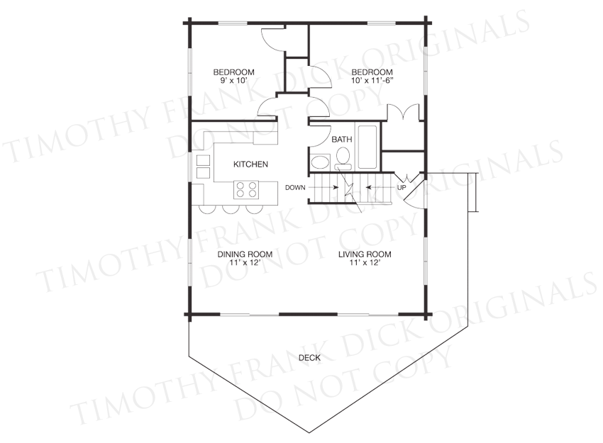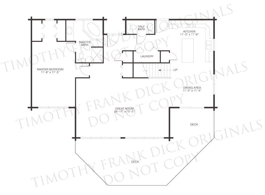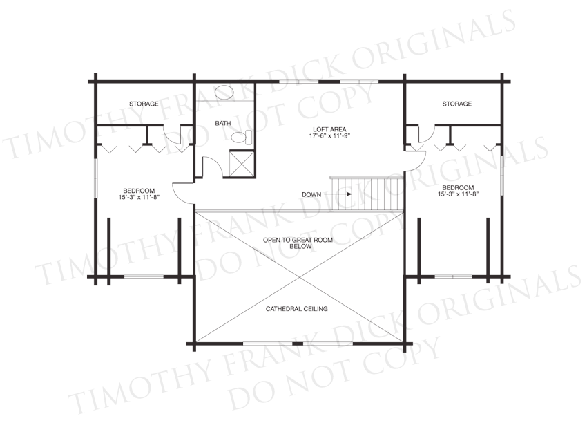 Conventional studwall and rafter framing can be in place of the log framing illustrated on the floor plans.